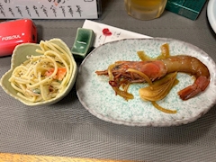2種類しかないお通し、相手の方にはなんの選択権もなくエビを取りました🦐笑 勝者ちな🏆 今日も頑張ります♡