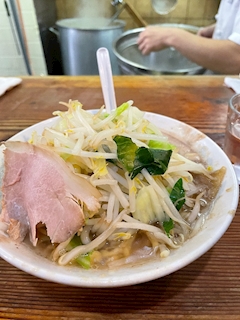 ここの二郎は名古屋では先駆け 麺が縮れ極太ですきだけど、チャーシューがうすいのとニンニク入れ忘れられたのが減点
