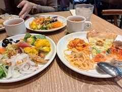 りほと美容デイ😁✌️終わってlunch🍝🍕ブュッフェでモリモリ食べてきた🤤今日は21時半出勤してるよー😁