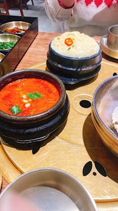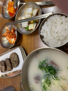 ままりちゃんと韓国行ってきたのだ(^ω^)まずは優しいお味のソルロンタン♡おいしかった〜♪(v^_^)v